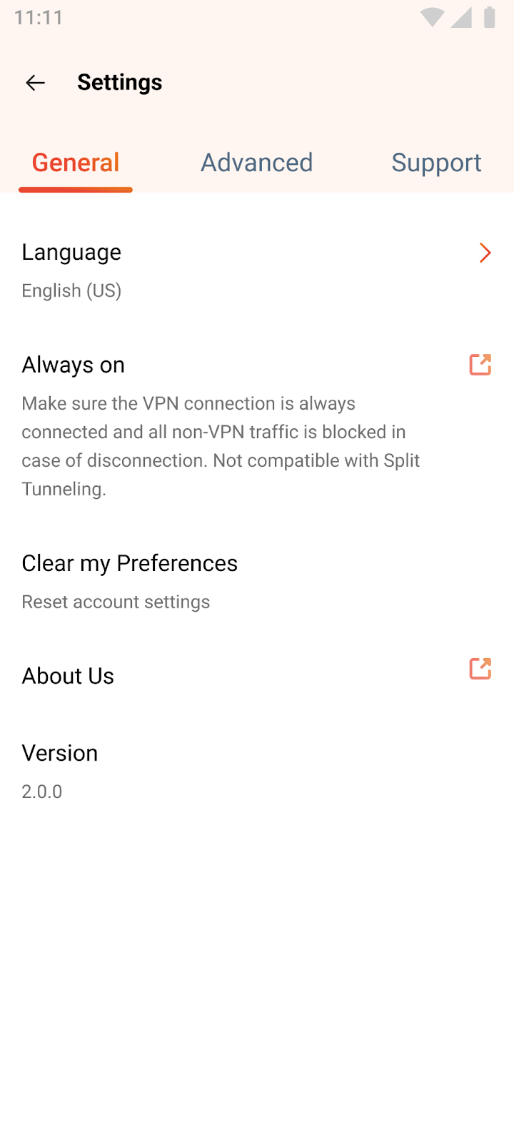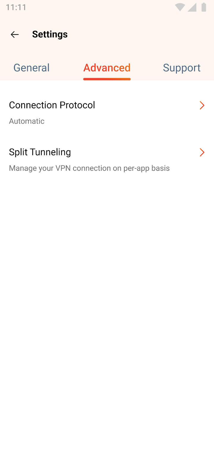 • In the advanced settings tab, you can see the Split Tunnelling option.