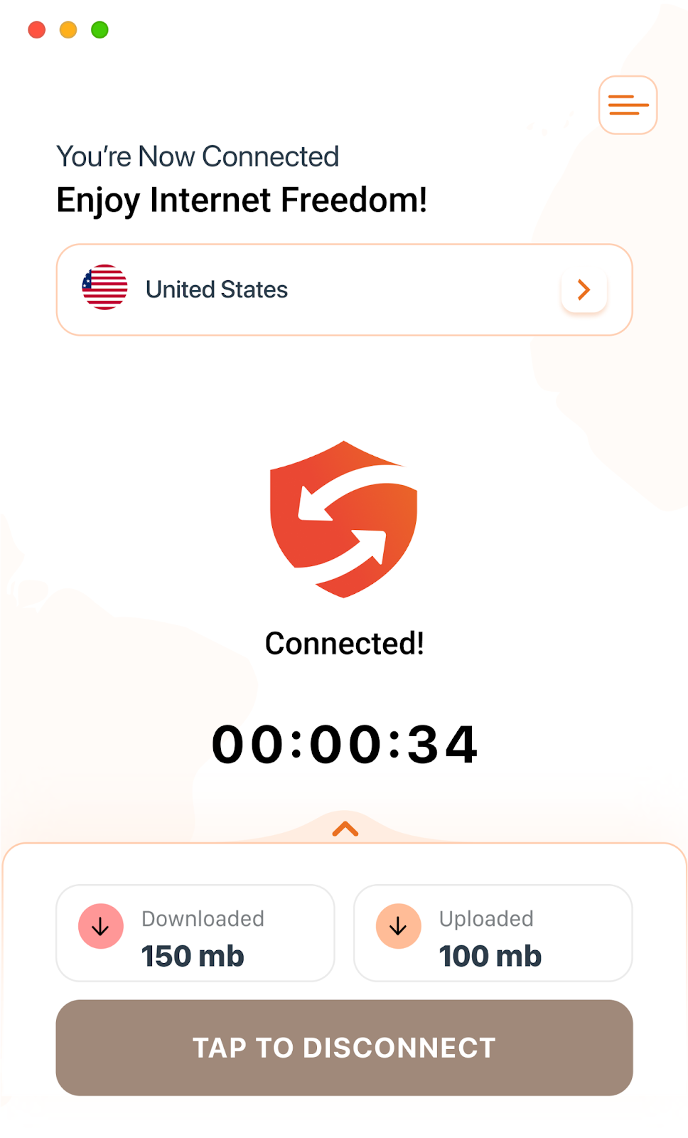 - If you are not a first-time user, click the Tap to Connect button at the bottom to connect to the fastest server.