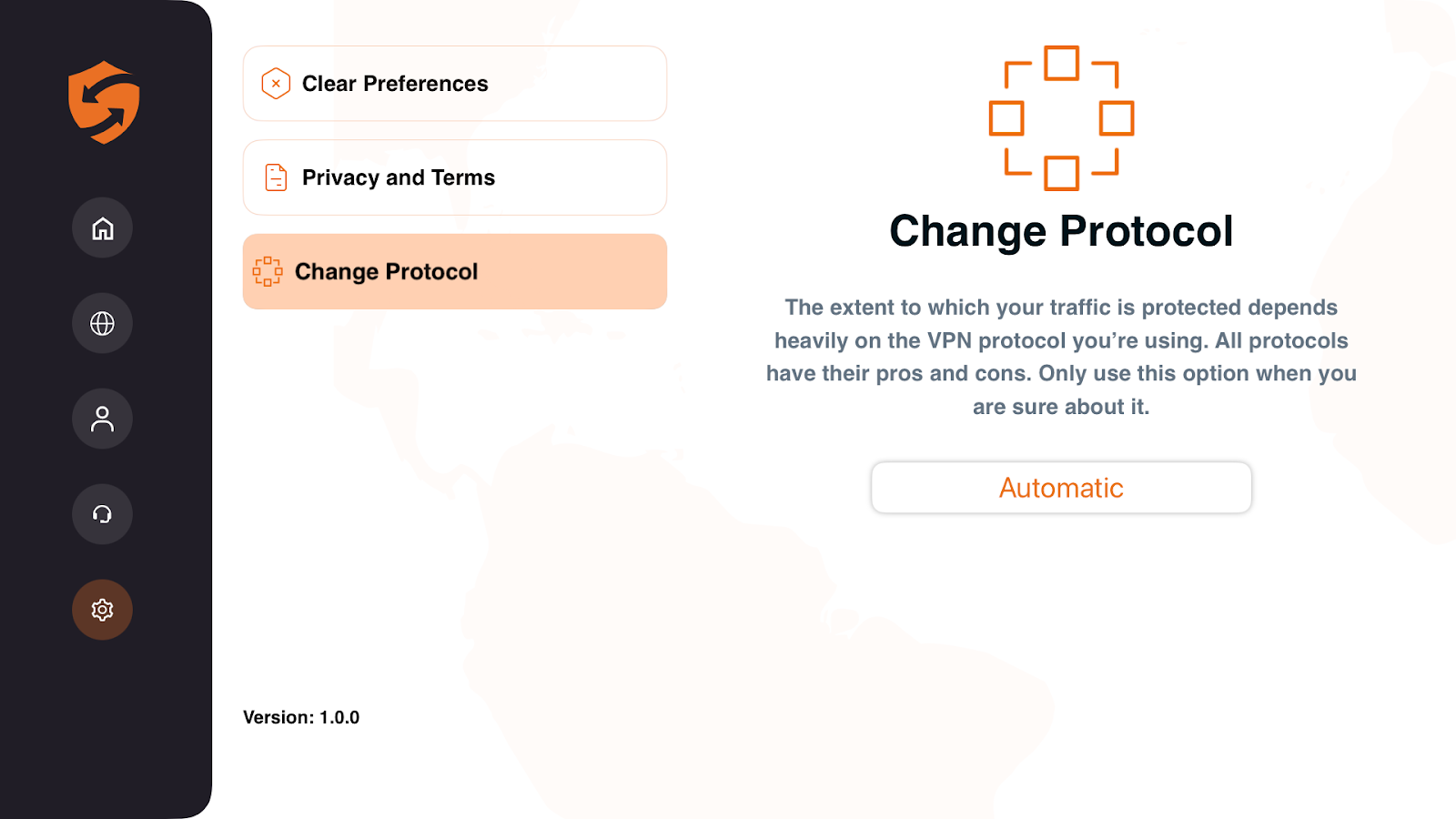 The VPN protocol type significantly impacts the performance and stability of your connection. Make sure to select the correct protocol when connecting to a VPN server. ConnectsVPN recommends the automatic protocol as it will select the most appropriate connection setting for you. However, if the Automatic protocol option does not work for you, feel free to switch between different protocols.