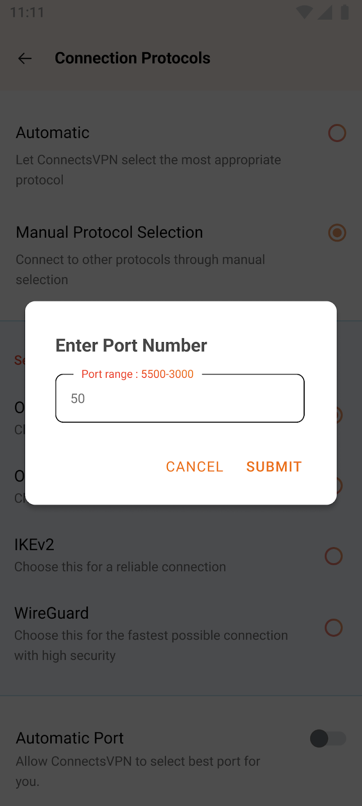 ConnectsVPN has introduced Automatic Port Selection, which automatically selects the best port to route your connection over the internet. You can toggle off the automatic port option to route the traffic through any specific port.