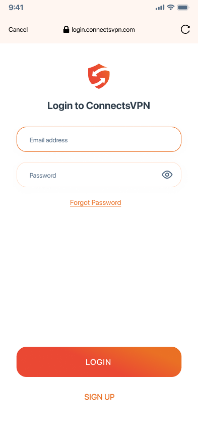 - Launch the ConnectsVPN app.