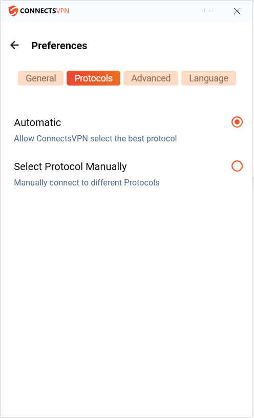 It’s important to note that the VPN protocol you select can affect your connection’s performance. Be sure to choose the suitable protocol when connecting to a VPN server. While ConnectsVPN VPN suggests the automatic protocol for optimal settings, you have the flexibility to manually switch to a different protocol if needed.