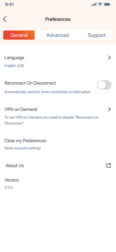 The settings in the ConnectsVPN app can be customized to create a personalized experience that suits your preferences. If needed, you can easily revert to the default settings with just one tap.