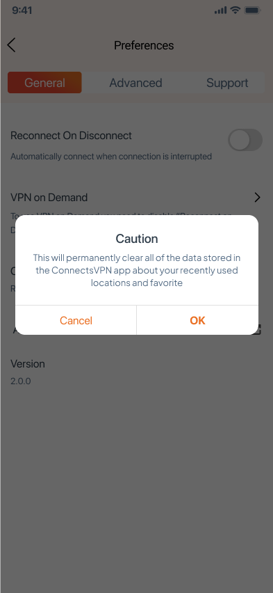 This choice lets you restore the ConnectsVPN app to its default settings. Interested in learning how to execute it? Follow the instructions below: