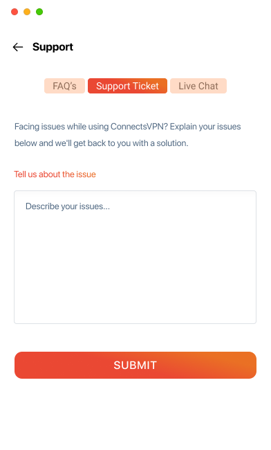 Discover more about ConnectsVPN by accessing the FAQ section within the ConnectsVPN application. Curious about how to do it? Follow the instructions below ?