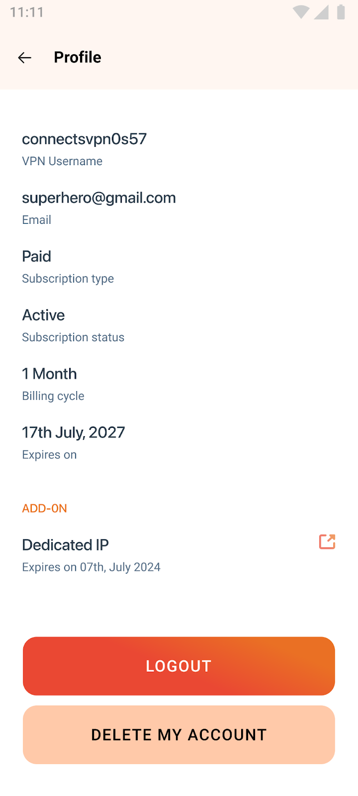 • You have been successfully logged out from the ConnectsVPN app.