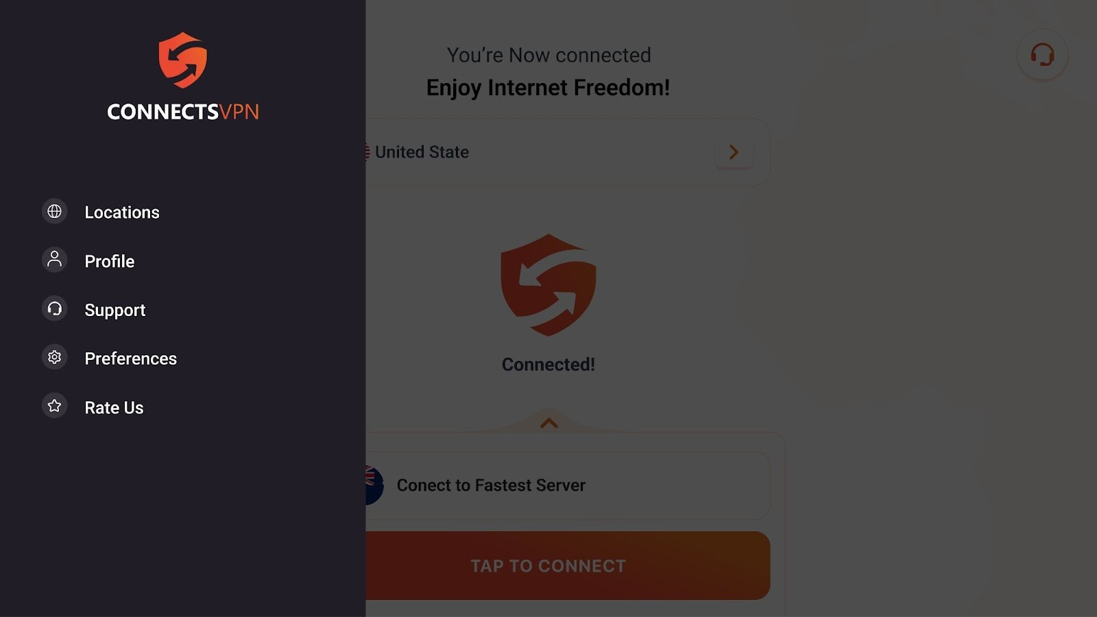 - Launch ConnectsVPN app