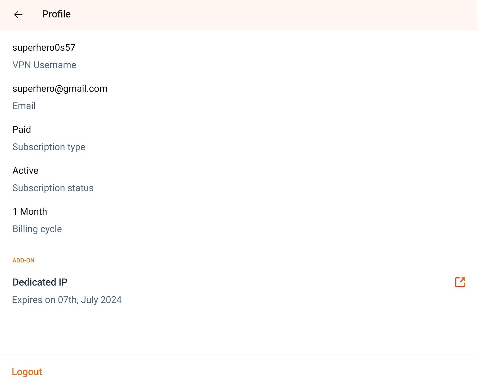 - Upon pressing the Logout button you will be logged out from the ConnectsVPN app successfully.